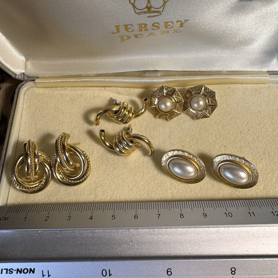 Vintage Gold Tone Earrings - 4 Pairs - Small job lot Vintage Earrings