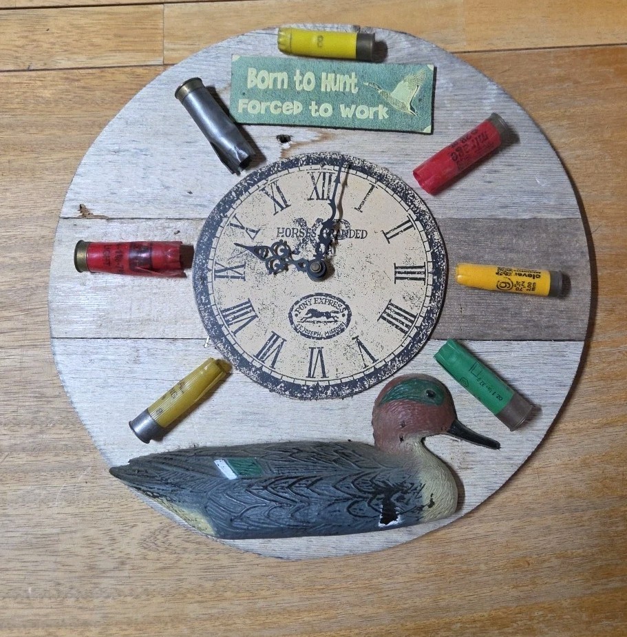 Clock Duck Hunting Shot Gun Shells Decoy Wooden Mancave Born To Hunt Homemade