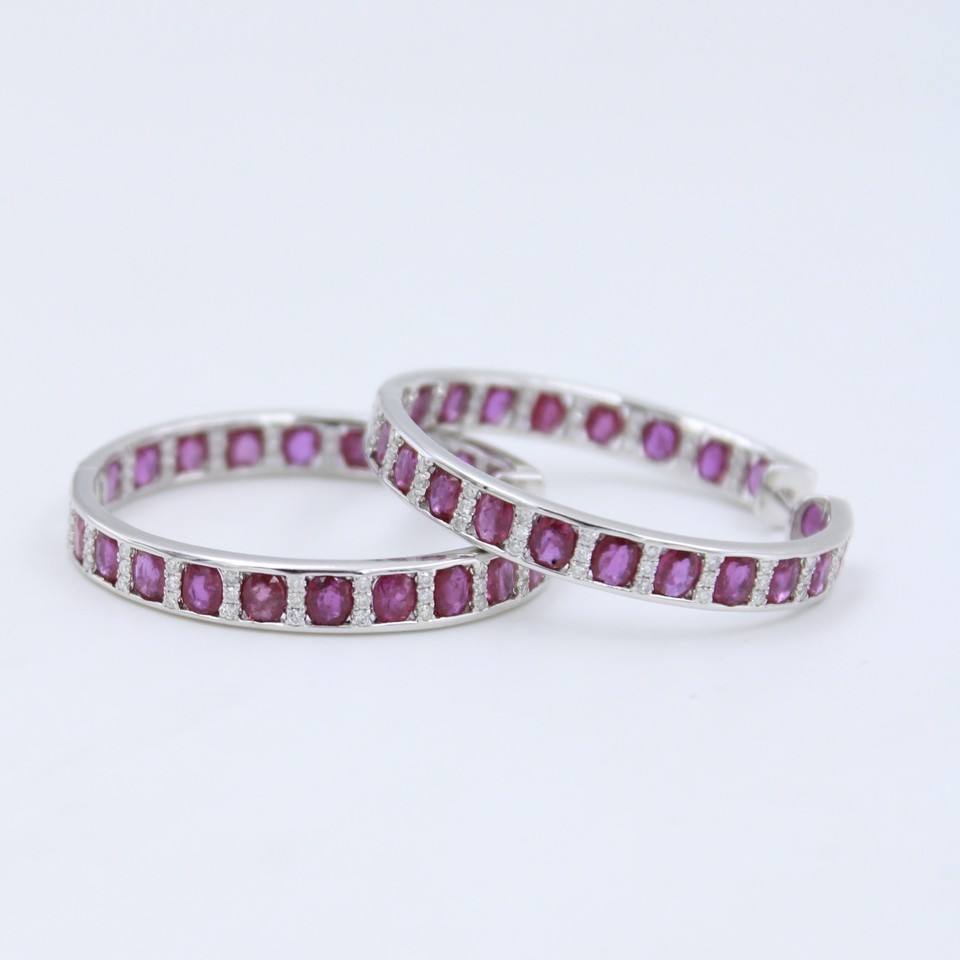 - Hoop Earrings Ruby White Gold 14k Metal Purity Fine Earrings,