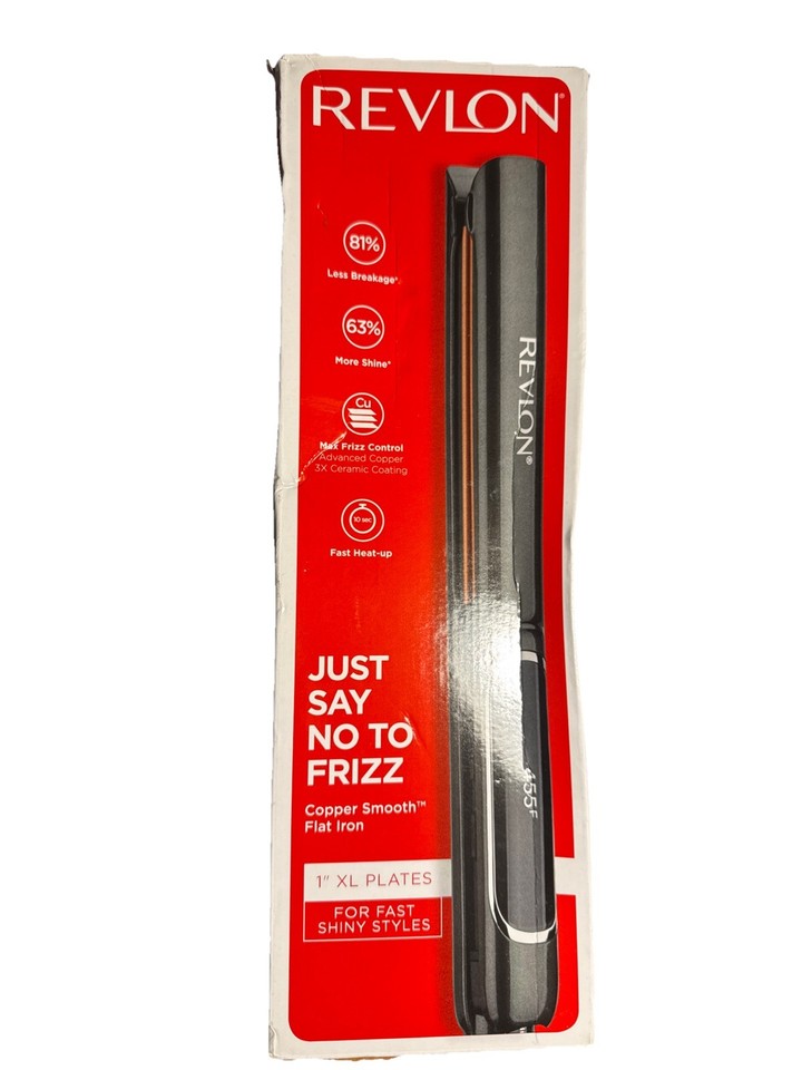 Revlon Just Say No To Frizz Copper Smooth Flat Iron 1" XL Plates Gray Torn Box