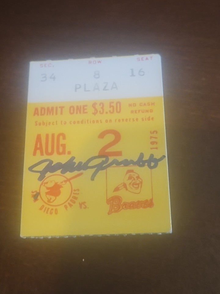 johnny grubb signed 1975 padres ticket stub autographed san diego 3 Hits game