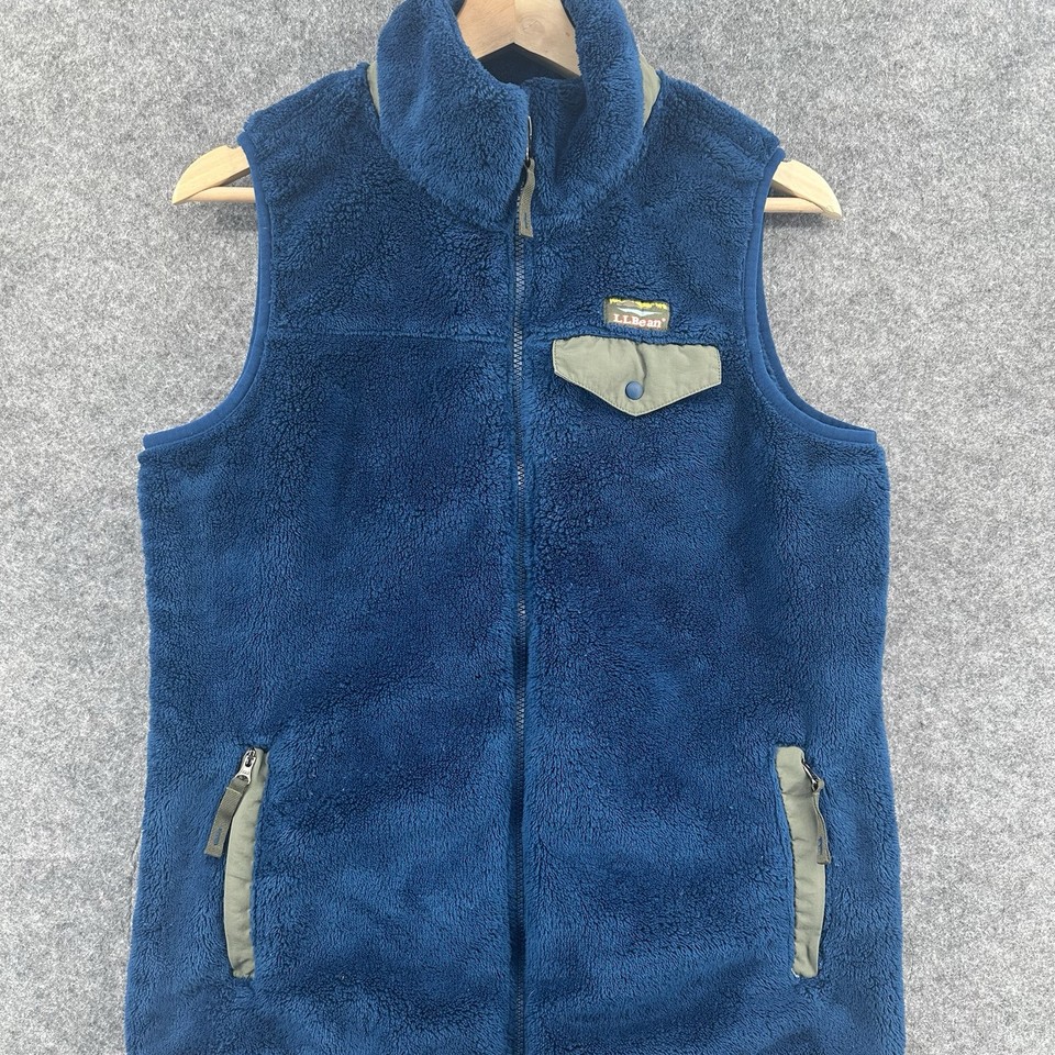 LL Bean Mountain Pile Fleece Vest Womens Small Blue Pockets Fuzzy Soft