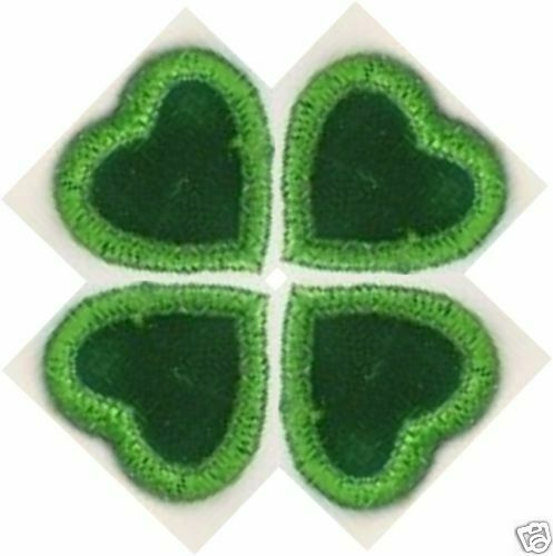 Four Green Hearts Shamrock Four 4 Leaf Clover Embroidery Patch