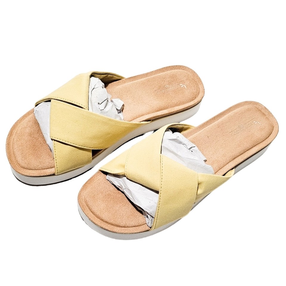 Koolaburra by Ugg New yellow & white Carenza twist slide sandal size 9.5