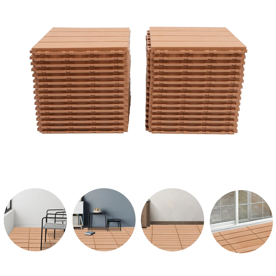 30X Plastic Interlocking Deck Tiles Dark Wood Grain Outdoor Patio Pavers 12"x12"