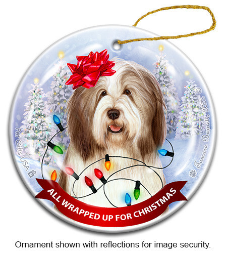 All Wrapped Up Ornament - Dark Liver and White Bearded Collie