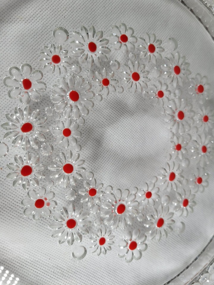 Vintage Cake Plate Glass Walther Kristallglas Germany Coral Red 30cm Dia Rare