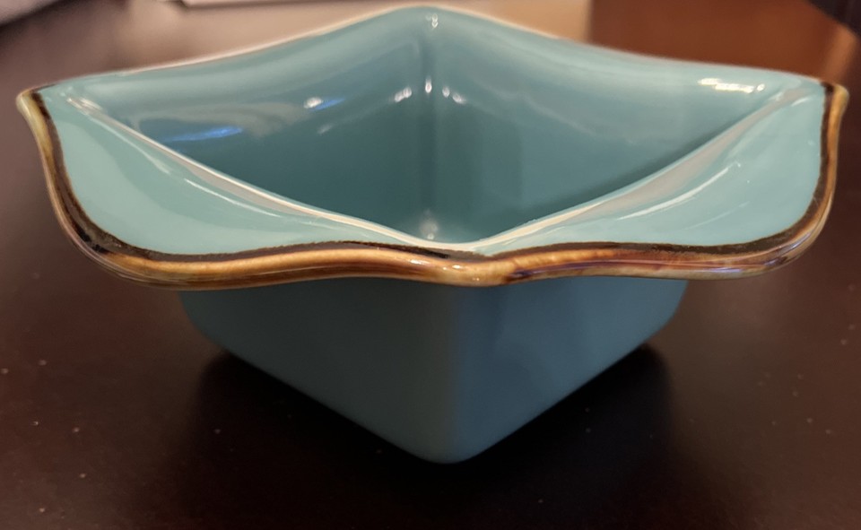 Southern Living Tuscan Turquoise Baking-Serving Bowl w Gold Brown Edging