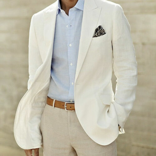 Men's Linen Suits White Blazer Groom Tuxedos Casual Prom Business Party Custom