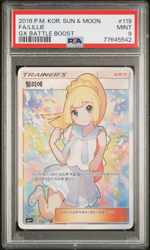 Full-Art Lillie Pokemon 2018 sm4+ GX Battle Boost SR KOREAN 119/114 PSA 9