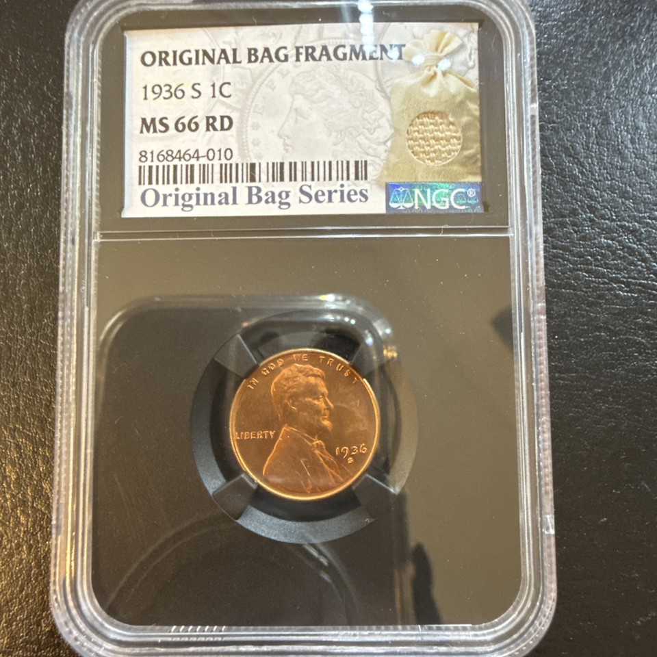 1936 S NGC MS66 RD LINCOLN WHEAT PENNY ORIGINAL BAG FRAGMENT 1C BLACK HOLDER