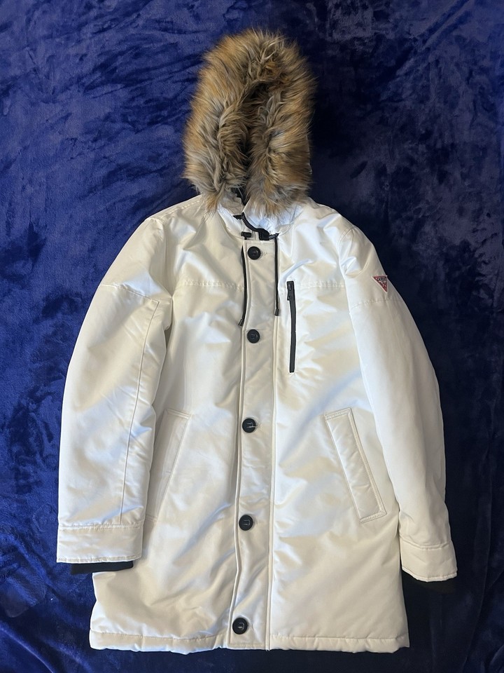 Guess Men’s Heavy Winter Parka Jacket Ivory/White Faux Fur (Brand New) Size: M
