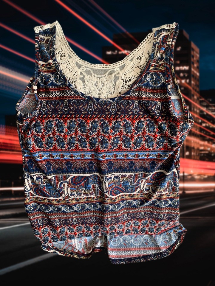 Pre Owned Women’s Daily Special Lace Paisley Tank Top Sz M Hippie Vibe