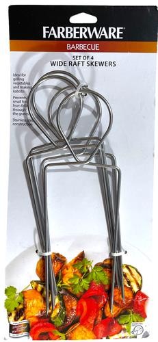 FARBERWARE DELUXE SET of 4 Wide Raft BARBECUE SKEWERS - for Kabobs & Veggies 9z