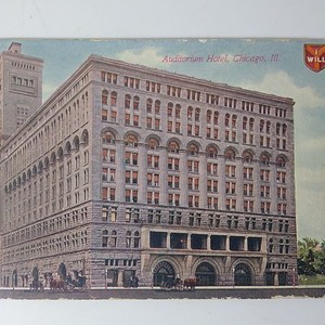 Vintage Auditorium Hotel Chicago Illinois Postcard 1911 Horse Drawn Carriage