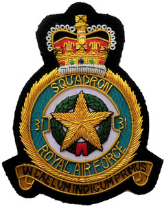 No. 31 Squadron Royal Air Force GOLD WIRED Patch Badge - MOD LICENSED