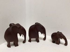 Carved Wooden Elephants of Different Sizes Set Of Three Y7