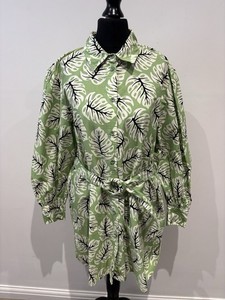 ZARA GREEN COLLARED LEAF PRINT SHORT OLIVIA SHIRT DRESS WITH BELT SIZE S VGC