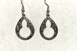 Rhodium Plate Ornate Style Dangle Earring-FANCY TEARDROP HOOP- 1 1/4"