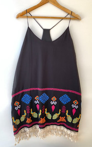 Va Va by Joy Han Size S-M Black Embroidered Cross Stitch Mini Dress