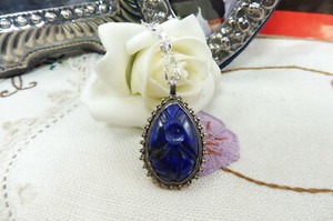 Vintage Handcrafted Carved Lapis Lazuli Sterling Silver Pendant Necklace