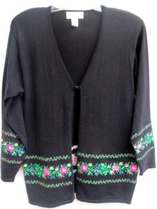 Vtg 80's...OVERSIZE...BLACK...EMBROIDERED...SWEATER...CASUAL CORNER...sz MED