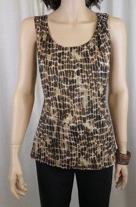 St. John Gold Wheat Multi Print Sleeveless Silk Top Sz. 6 NWT $395