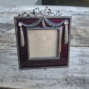Vintage Terragrafics Purple Enamel Silver Metal Rhinestones Small Picture Frame