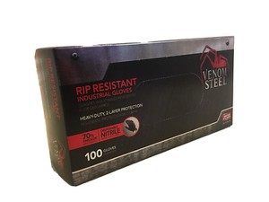 VENOM STEEL NITRILE BLACK RUBBER GLOVES / ONE SIZE FITS MOST HANDS100 COUNT BOX