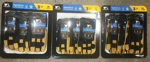 Wells Lamont Men's HydraHyde Leather Medium, Large, X-Large Work Gloves, 3 Pairs