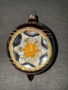 Vintage Jumbo Glass Christmas Ornament Teardrop Star Reflector Poland 7”