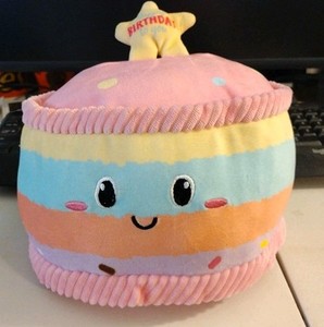 Birthday Cake Plush 9”x9” Smoochy Pals Stuffed Dessert Pink Striped Linzy