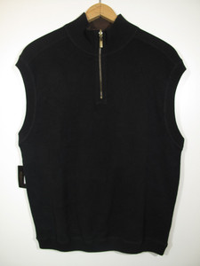 NWT FX Fusion Men's Sz L Reversible Vest 1/4 Zip Front 100% Cotton Black~Brown
