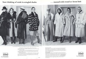 1985 Saga Fox Tabak Furs jacket coat 1-page MAGAZINE AD