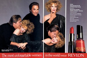 1990 Revlon Melanie Griffith Don Johnson Lipstick lips makeup 2-page MAGAZINE AD