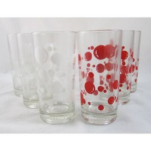 Bubble High Ball Cocktail Glasses Tumblers Barware Red White Set of 6 Vintage