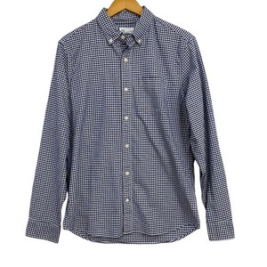 GAP Shirt Mens Medium Blue Gingham Button Up Standard Fit Stretch Long Sleeve