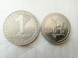 1 Lari (2006) & 20 Tetri (1993) Georgian coins