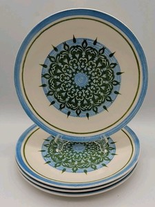 Vtg Royal Ironstone Blue And Green Floral Bread Plates Set Of 4 Appetizer Desert