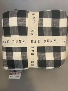 Rae Dunn Blessed Black White Plaid Buffalo Check Throw Blanket Sherpa 50" x 60"