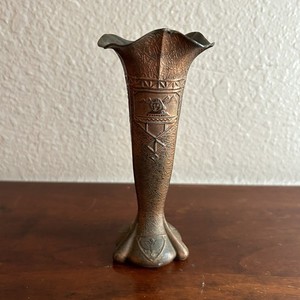 Vintage Art Nouveau Copper Plate Egyptian Motif Vase Made in Japan Silver Base
