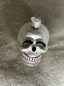 Old World Christmas Halloween Glass Ornament The Skull 2001 Skeleton OWC Glitter