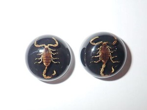 Insect Cabochon Black Scorpion Specimen Round 25 mm Clear 2 pieces Lot