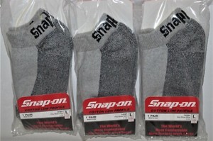 3 PAIRS Snap-On Crew Socks Men's GRAY LARGE ~ FREE SHIPPING ~ MADE IN USA *NEW*