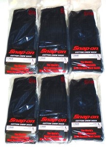 12 Snap-On CREW Socks BLACK LARGE ~ FREE SHIPPING ~ MADE IN USA 12 PAIRS *NEW*