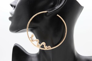 Women Gold Metal Hook Fashion Jewelry Big Hoop Earrings Set Bling Style Snake