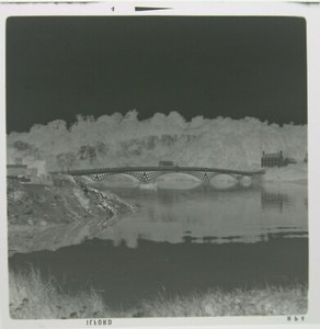 Bus On The Old Wye Bridge / Town Bridge Chepstow - B & W Negative 1950s