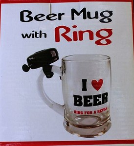 NEW BEER MUG with Ring "I love BEER ring for a refill" Christmas Easter Birthday