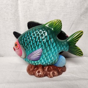 E. Alvarez Tonala Mexico Ceramic Fish Ornament Colorful Cichlid Folk Art