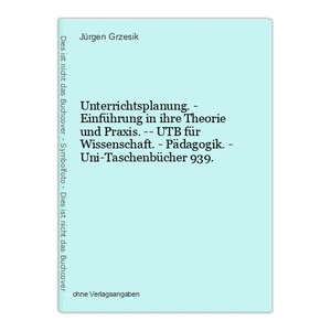 Unterrichtsplanung. - Einführung in ihre Theorie und Praxis. -- UTB für Wissensc